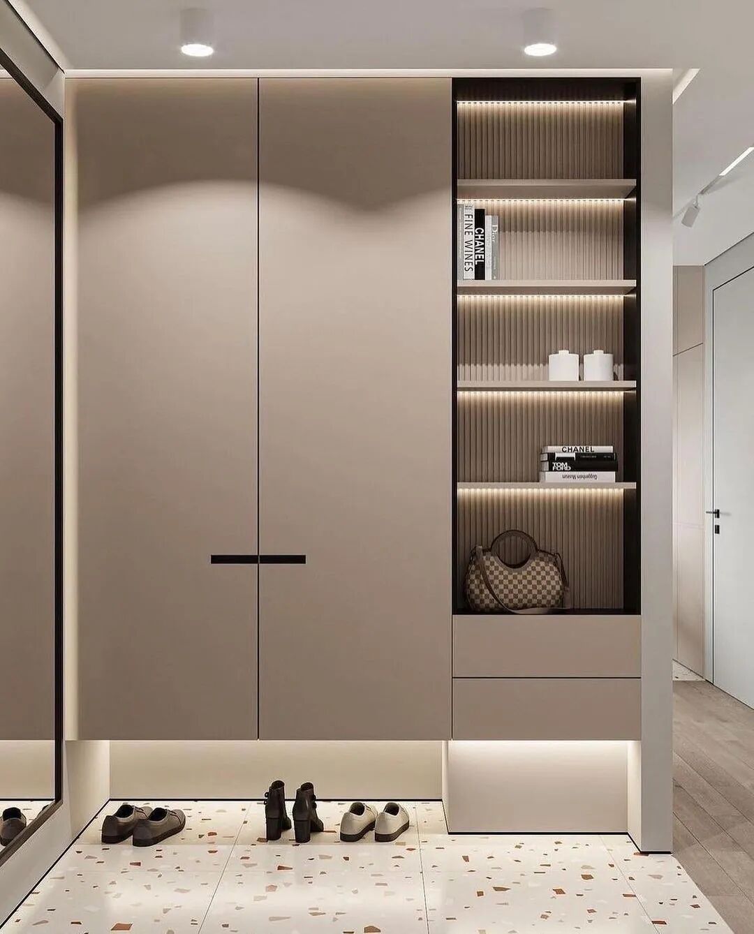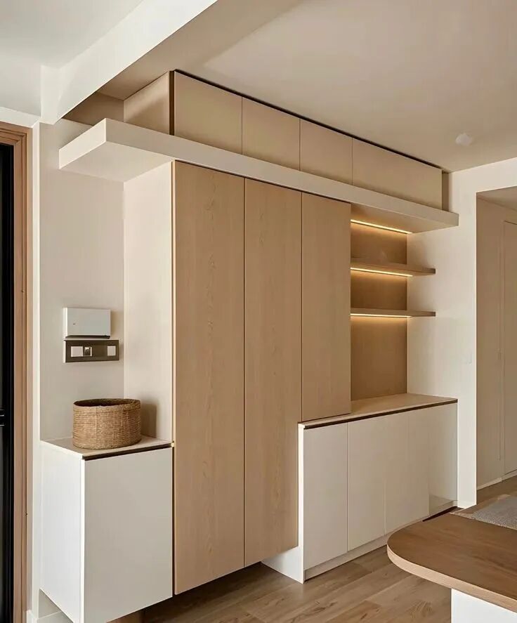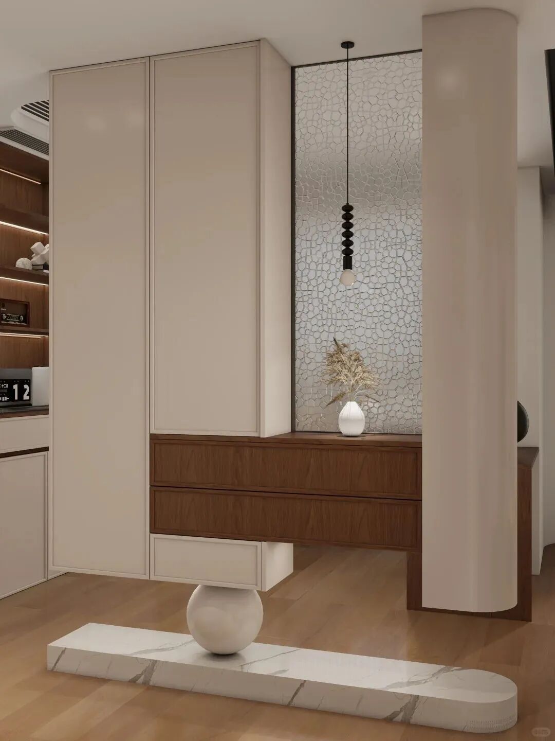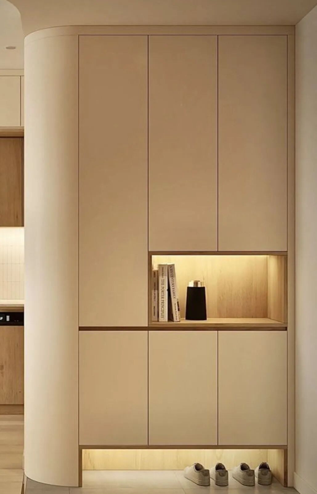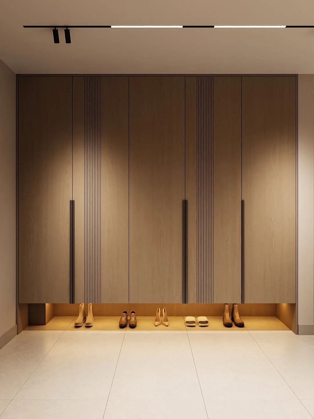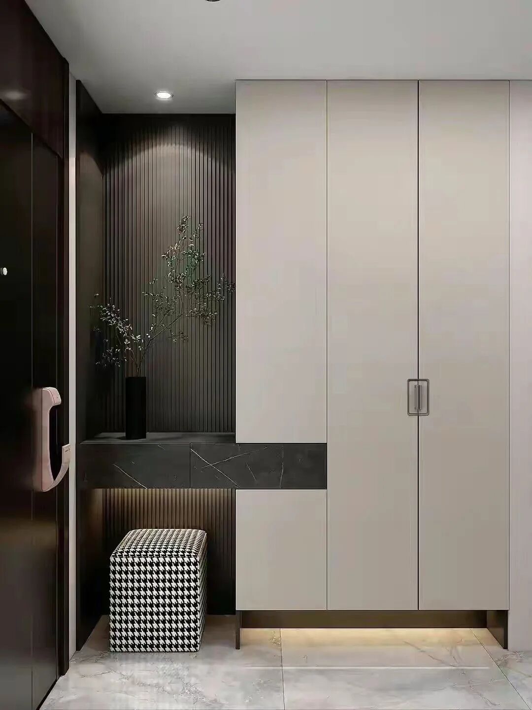入戶(hù)玄關(guān)作為家的 “門(mén)面擔(dān)當(dāng)”,既要有強(qiáng)大的收納能力,又得具備高顏值,才能一進(jìn)門(mén)就給人帶來(lái)好心情。有的玄關(guān)以木質(zhì)元素為主,深淺木色搭配和諧,打造出自然溫馨的氛圍。柜體下方留空,方便放置常穿的鞋子,中間的臺(tái)面還能擺放裝飾花束、香薰等小物件,實(shí)用又美觀(guān)。金色的柜門(mén)把手,為整體增添了一絲奢華感,旁邊的小凳子和臺(tái)面,讓換鞋、整理儀表都變得便捷。也有走簡(jiǎn)約風(fēng)的,淺色調(diào)的柜體搭配線(xiàn)條感十足的設(shè)計(jì),簡(jiǎn)潔大方。嵌入式的燈光設(shè)計(jì),不僅起到了照明作用,還營(yíng)造出了溫馨的氛圍,小小的臺(tái)面和凳子,滿(mǎn)足了日常的基本需求。另外,部分玄關(guān)將收納與裝飾巧妙結(jié)合,柜體上的特殊造型設(shè)計(jì),或是搭配藝術(shù)感的擺件,讓玄關(guān)不再只是收納空間,更成了家中的一處藝術(shù)角落。總之,這 50 款入戶(hù)玄關(guān),每一款都在收納與顏值之間找到了完美的平衡,讓你一進(jìn)門(mén),就能感受到家的美好與舒適。