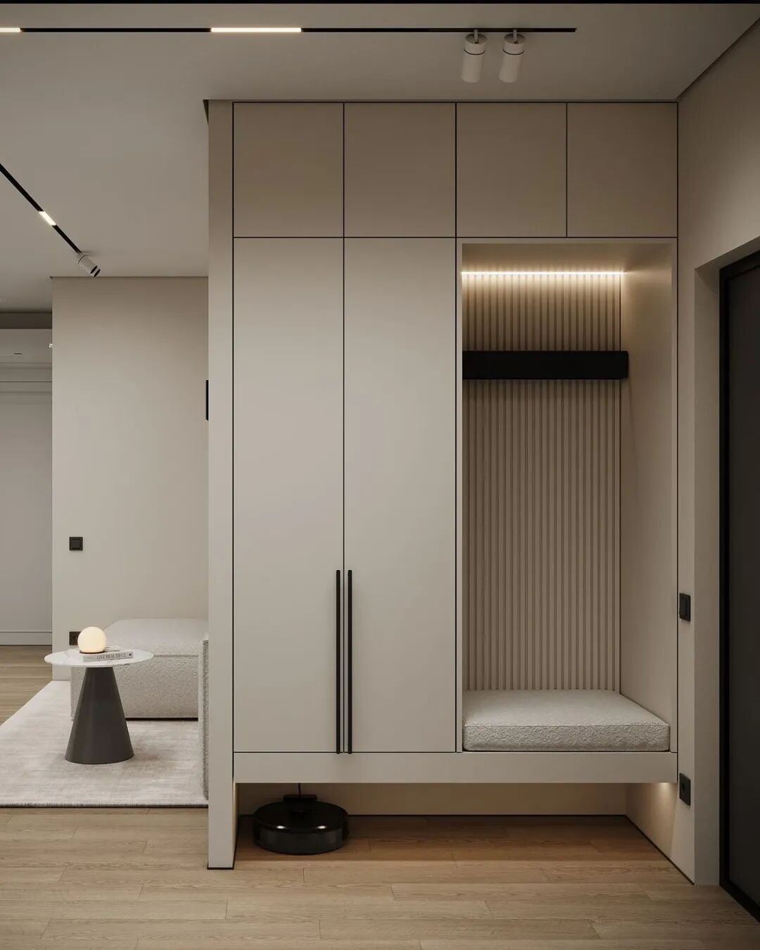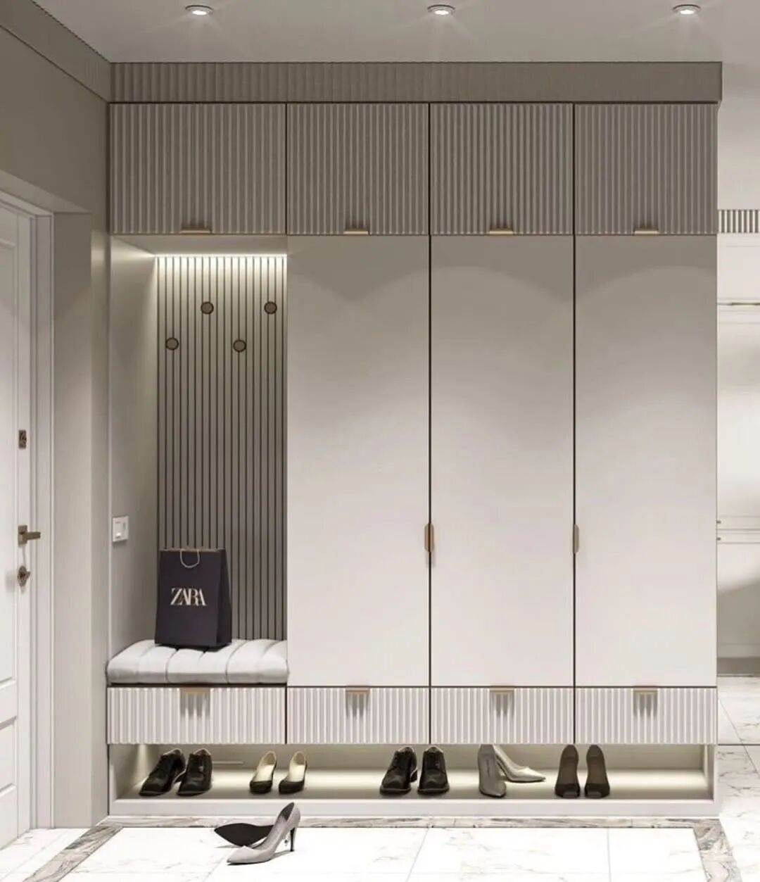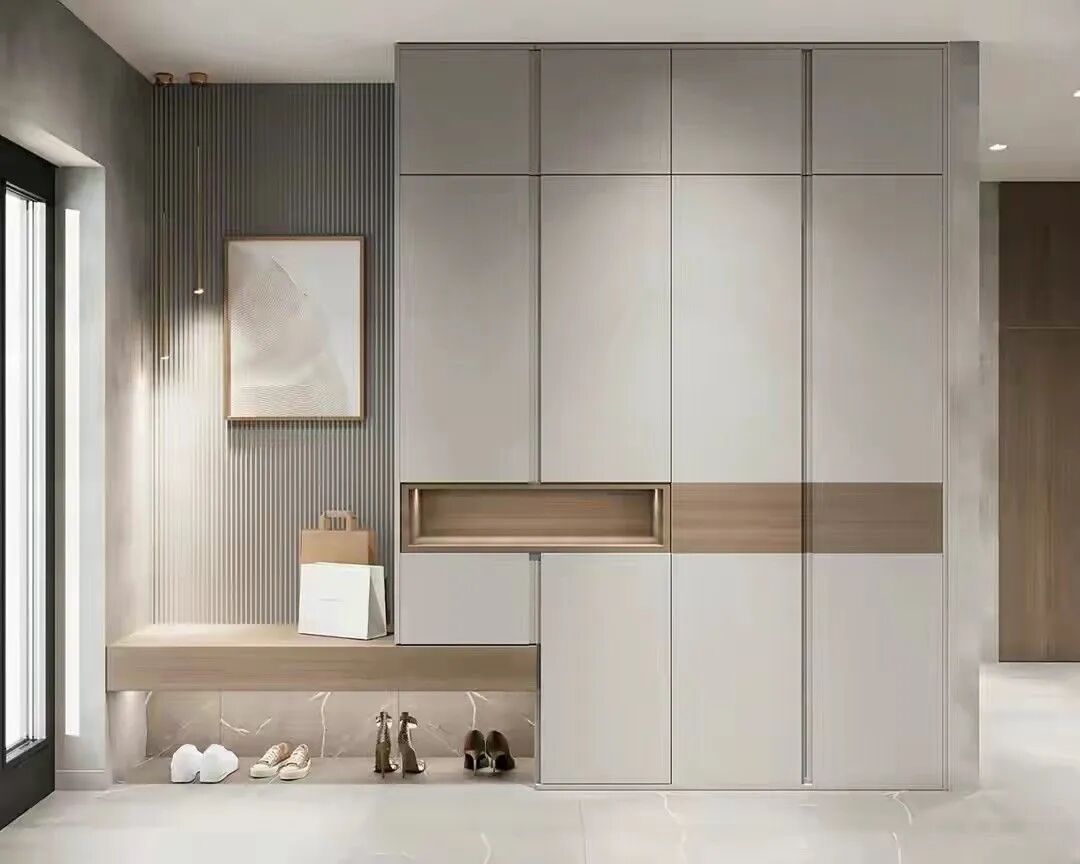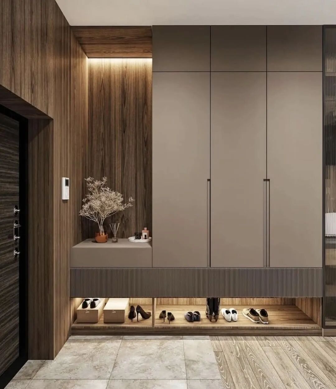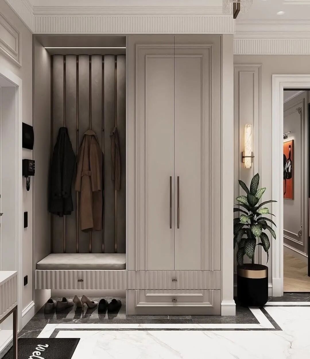 入戶(hù)玄關(guān)作為家的 “門(mén)面擔(dān)當(dāng)”,既要有強(qiáng)大的收納能力,又得具備高顏值,才能一進(jìn)門(mén)就給人帶來(lái)好心情。有的玄關(guān)以木質(zhì)元素為主,深淺木色搭配和諧,打造出自然溫馨的氛圍。柜體下方留空,方便放置常穿的鞋子,中間的臺(tái)面還能擺放裝飾花束、香薰等小物件,實(shí)用又美觀(guān)。金色的柜門(mén)把手,為整體增添了一絲奢華感,旁邊的小凳子和臺(tái)面,讓換鞋、整理儀表都變得便捷。也有走簡(jiǎn)約風(fēng)的,淺色調(diào)的柜體搭配線(xiàn)條感十足的設(shè)計(jì),簡(jiǎn)潔大方。嵌入式的燈光設(shè)計(jì),不僅起到了照明作用,還營(yíng)造出了溫馨的氛圍,小小的臺(tái)面和凳子,滿(mǎn)足了日常的基本需求。另外,部分玄關(guān)將收納與裝飾巧妙結(jié)合,柜體上的特殊造型設(shè)計(jì),或是搭配藝術(shù)感的擺件,讓玄關(guān)不再只是收納空間,更成了家中的一處藝術(shù)角落。總之,這 50 款入戶(hù)玄關(guān),每一款都在收納與顏值之間找到了完美的平衡,讓你一進(jìn)門(mén),就能感受到家的美好與舒適。